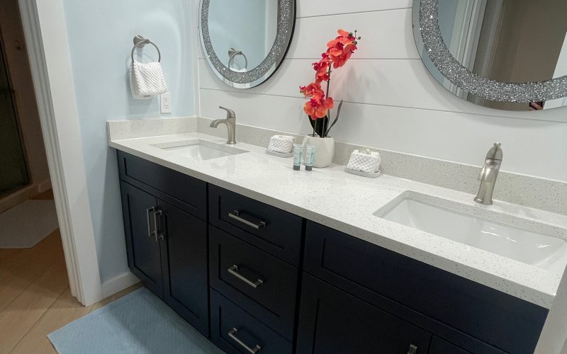 With it’s double sink and a separate private vanity, this beautiful master bath will be the spot where you can unwind after a fun-filled day at the beach. Click on the photo to see the image gallery.